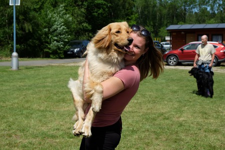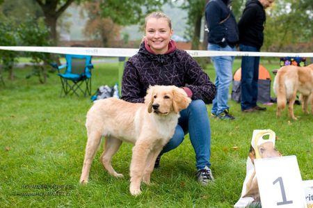 Premiéra pro můj blonďatý gang na této výstavě. Přijel i Aimošek si omrknout výstavu a vyzkoušet si kruh s majitelkou. Na první výstavu si vedl dobře, hodnocení si odváží krásné, doladí předvedení a úspěchy přijdou samy, tentokrát teda Velmi dobrý 2, ve třídě Mladých. Ve třídě Mladých byla i Aura, která si odváží známku Výbornou 1, krásné hodnocení a svůj první titul CAJC. Tinuša si v silné konkurenci odváží známku Výborná, bez pořadí a krásné hodnocení. Pan rozhodčí Otakar Vondrouš. Děkuji moc za krásný den. :)