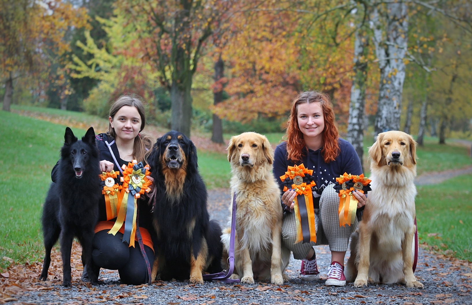 Naše první Halloweenská krajská výstava a dopadla na výbornou! Poprvé jsem teda jela s oběma holkami sama, takže jsem vyjížděla dříve, aby bylo místo. Ale v Kelči na nás čekala naše známá parta Aničky s Paťou a Hamikem a Skye. První šla na řadu Skye, která vyhrála v mezitřídě VT a Krajského vítěze! Další šel do kruhu Hamik, který si ve třídě Otevřené vyběhal známku Výborný 2. Potom už jsem šla na řadu s holkami, kdy Aura byla ještě o dva dny v Mladých a vyhrála Vítěze třídy! To nejlepší na konec Tinuška šla poprvé do třídy vítězů a vyběhala si VT a Krajského vítěze! Tudíž nové tituly do sbírky! ♥ Pan rozhodčí byl Otakar Vondrouš a my moc děkujeme za krásné posudky! :)